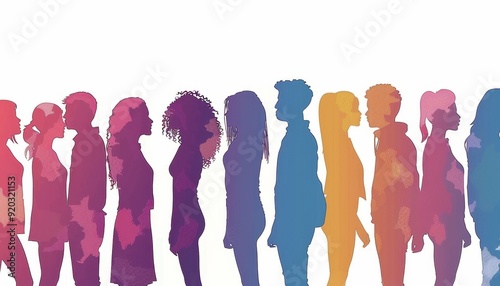 Diverse silhouettes of people standing in a row with colorful gradient design