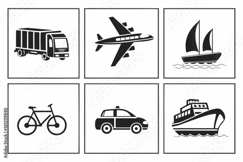 Diverse Transportation Methods Icons Collection.