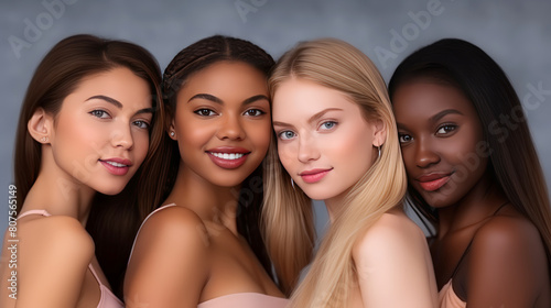 diversity women , girl teenager group, skin and body care