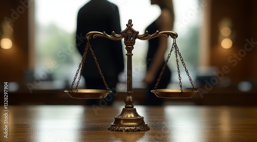 Divorce and Legal Dispute - Justice Scale with Blurred Couple in Background
