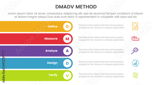 dmadv six sigma framework methodology infographic with rectangle round shape vertical stack 5 point list for slide presentation