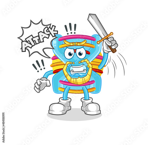 DNA knights attack with sword. cartoon mascot vector