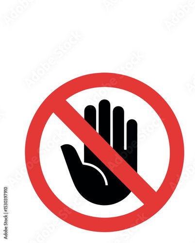 Do Not Touch Sign - Prohibited Hand Symbol - Red Circle with Slash Over Stop Hand - Vector Safety Warning Icon