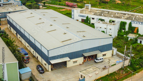india, industrial estate, manufacturing, factory, infrastructure, development, aerial view, logistic, warehouse, industry, town, region, countryside, building, road, transport, commerce, business, estate, production, workspace, commercial zone, agriculture, skyline, machinery, landscape, sky, village, peaceful, city landscape, construction