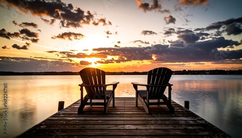 Dock chairs at sunset