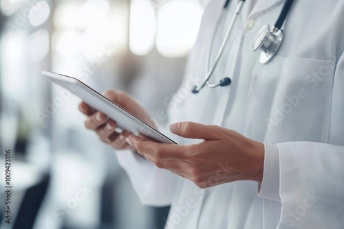Doctor using digital tablet at his clinic, Generative AI