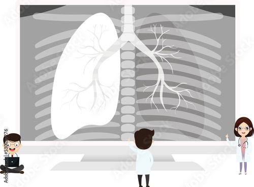 Doctor with multi-x ray view boxes and look for lung disease.Organ disease and people respiratory illness. Doctor health treatment and care in flat clinic.