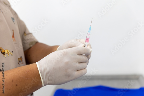 doctor with white gloves preparing vaccine