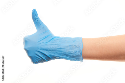 isolated, rubber, thumb, preparation, white, medicals, chemist, surgeon, signs, adult, clinic, success, laboratory, arm, finger, symbol, clean, glove, plastic, treatment, female, positive, medicine, protection, wearing, healthy, up, surgery, care, latex, hospital, safety, close, woman, science, operation, professional, showing, approval, background, work, hygiene, health, excellent, uniform, microbiology, doctor, hand, health care, blue