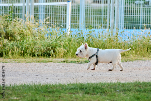 Dog walking in the park on a sunny day