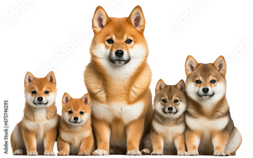 Dogs Sitting in a Group on White Background, Shiba Innu,