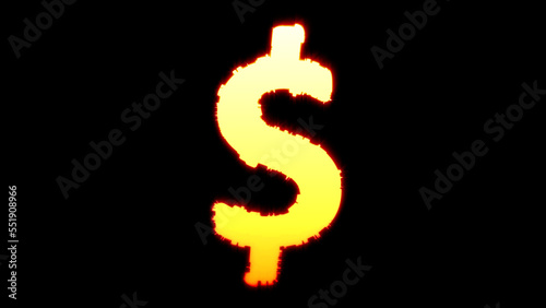 dollar - peso sign - vivid yellow blazing distortion font on black, isolated - object 3D rendering