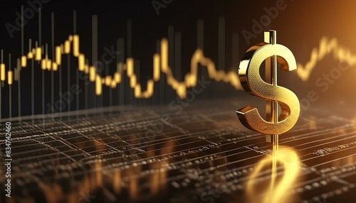 Dollar Sign with Forex Chart - Dollar Exchange - Growth of Dollar on the Market - The Reflection of the Dollar on the Stock Market - Investment and Trading with Dollar and Stock Exchange
