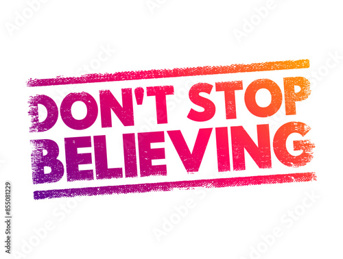 Don't Stop Believing - is an encouraging phrase that urges someone to maintain faith, hope, and confidence despite challenges or difficulties, text concept stamp