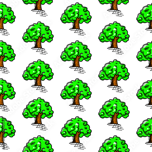 doodle tree pattern background. Tree pattern background. Seamless pattern trees background. flat illustration of tree.