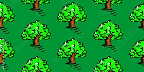 doodle tree pattern background. Tree pattern background. Seamless pattern trees background. flat illustration of tree.