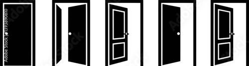 door, open, closed, vector, silhouette, black, white, entry, exit, access, interior, illustration, symbol, doorway, home, room, architectural, design, frame, passage, icon, shape, graphic, element, simple, entrance, opportunity, way, transition, opening