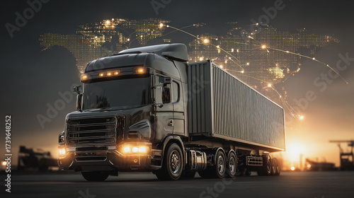 double exposure, twilight, topview, container, truck, business, logistic, transportation, cargo ship, working, earth, world map, digital, city, connection, network, innovation, reciprocity, city landscape, concept, future, wireless, social, media, connect, people, double, exposure, wave, background, artificial intelligence, thing, app, wi-fi, ar, phone, sensor, website
