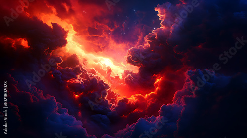 Dramatic clouds illuminated by a fiery sunset, showcasing vibrant colors and texture.