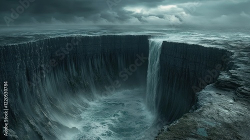 waterfall, ocean, cliff, stormy, dramatic, coastal, landscape, fantasy, water, nature, sea, rock, power, majestic, powerful, wild, scenic, view, beautiful, amazing, impressive, awe, wonder, mysterious, dark, moody, intense, vibrant, energy, force, cascade, torrent, rush, flowing, falling, erosion, geology, environment, travel, adventure, discovery, exploration, photo, image