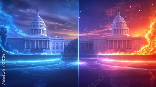 election, voting, ballot, democracy, campaign, result, turnout, referendum, political, issue, party, platform, public, opinion, governance, scene, dynamic, storm, building, cleaving, celestial, architecture, contrast, night, symbolic, vision, cosmic, capitol, universe, force, energy, fantasy, wonder, artistic, power, abstract, transformation, majestic, intense, powerful, dramatic, glowing