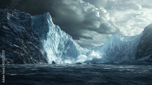 dramatic, panoramic, view, norwegian, glacier, ice, mountain, landscape, natural, scenery, wilderness, cold, blue, water, sky, cloud, storm, thrust, rock, edge, environment, nature, beauty, serene, tranquil, rugged, majestic, adventure, exploration, remote, isolated, stunning, atmospheric, glacé, chilly, coastline, breathtaking, geography, travel, wild, scenic, heritage