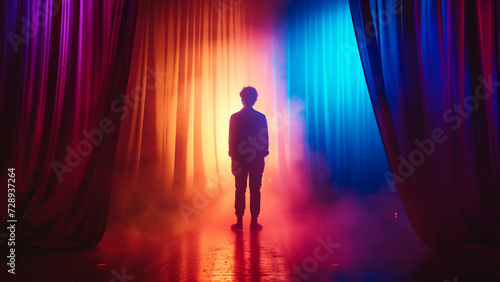 Dramatic Performance Silhouette in Spotlight with Theater Curtains