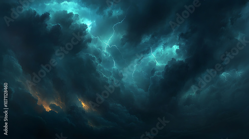 dramatic stormy sky with dark clouds and lightning ominous atmospheric landscape