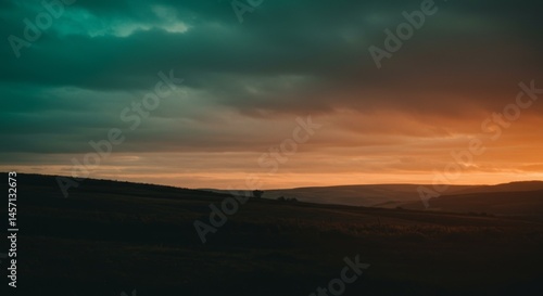 sunset, landscape, sky, cloud, orange, teal, dark, horizon, field, evening, twilight, nature, scenic, view, outdoors, dramatic, colours, atmosphere, mood, peaceful, serene, calm, tranquil, rural, countryside, gold, hours, silhouette, hill, ground, texture, shadow, light, ray, gradation, vibrant, image, photo, photo, picture, visual, graphic, art, beautiful, aesthetic