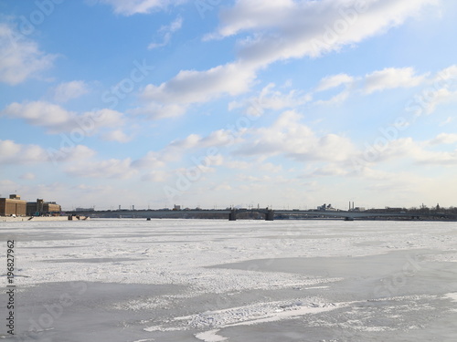 drawbridge across the frozen river