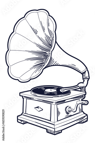 Drawn gramophone retro musical record player