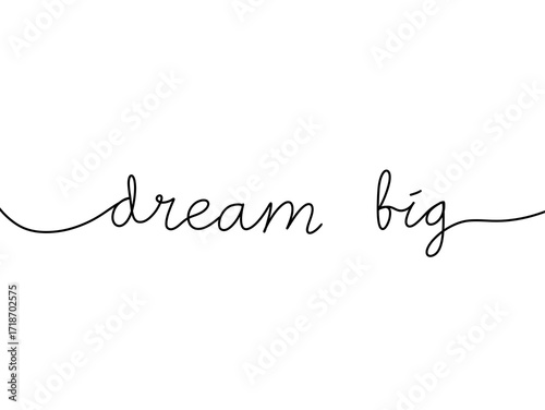 Dream big Elegant handwritten lettering. Minimalist calligraphy continuous word hand lettered phrase. Handwritten typography design self improvement Dream big.