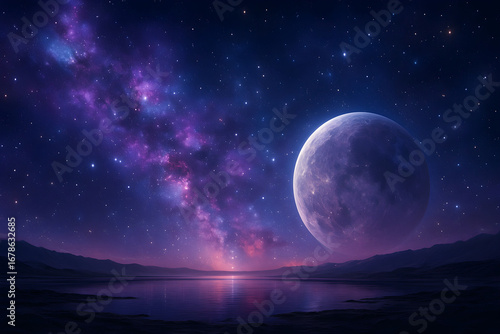 Dreamlike Cosmic Night with Stars, Galaxy, and Moon