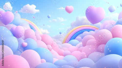 Dreamy Cloudscape: Hearts, Rainbows, and Pastel Dreams