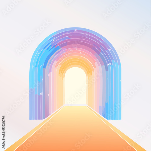 Dreamy gradient archway illuminating a path of colorful light, a symbolic journey towards exciting new beginnings