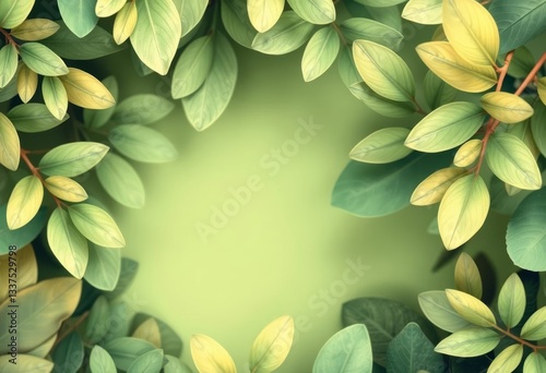 Dreamy pastel olive green tropical leaves, abstract painterly style background, calm, muted