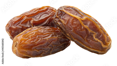 Dried dates with wrinkled texture are shown isolated on transparency background. rich brown color and natural sweetness make them popular snack and ingredient in various dishes