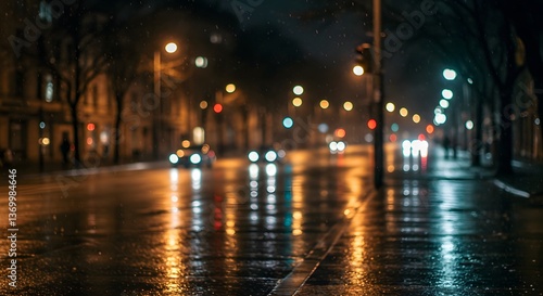 city, street, road, driving, car, headlamp, vehicle, night, rain, raining, wet, light, blurred, transport, urban, street light, sidewalk, building, tree, dark, evening, traffic, motion, outdoors, city landscape, weather, travel, scene, illumination, infrastructure, autumn, fall, abstract, bokeh, lifestyle, background, pattern, atmosphere, moody