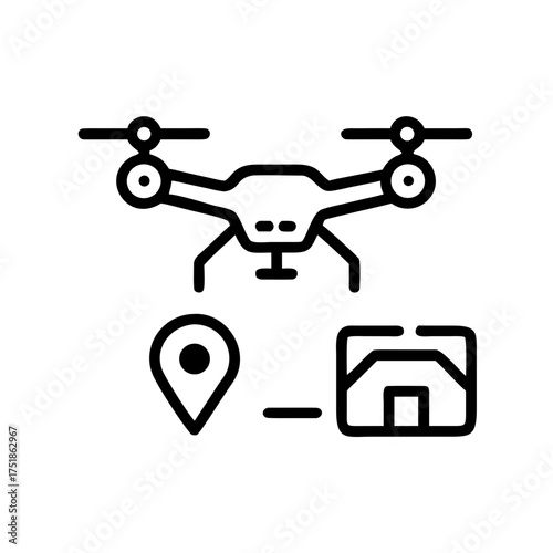 drone, package, house, location, pin, delivery, shipping, transportation, technology, aerial, aircraft, automation, logistic, service, express, fast, convenient, address, home, building, map, global positioning system, navigation, point, mark, spot, direction, route, destination