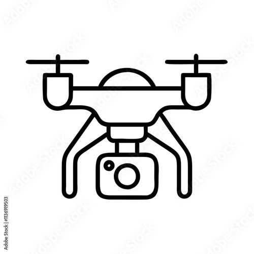 drone with camera icon, photography day line art, photography day icon - simple black line art icon of drone with camera, for photography day celebrations. photography vector art.