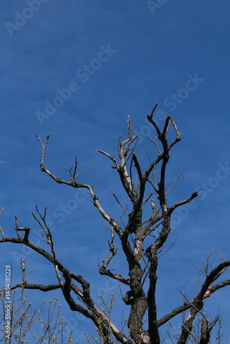 Dry branches of a dead tree against blue sky background