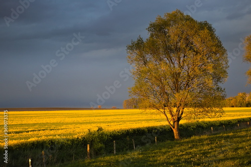 Drzewo i pole kwitnącego rzepaku
