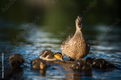 Duck family with duck chicks