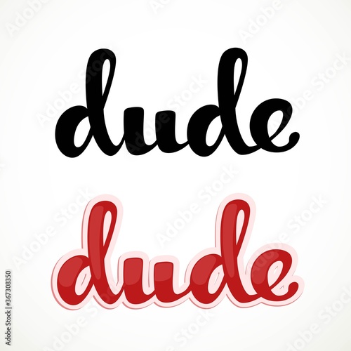 inscription, dude, black, poster, label, font, concept, letter, message, signs, decoration, card, vector, symbol, calligraphy, art, lettering, white, element, graphic, isolated, typography, red, background, banner, text, illustration, design