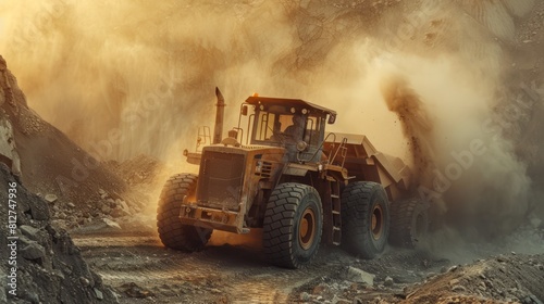 construction, machinery, dusty, rock, excavation, bulldozer, earthmover, heavy, industrial, engineering, outdoors, mining, site, debris, equipment, rugged, loader, terrain, work, construction site, vehicle, operation, construction equipment, yellow, large, powerful, wheel, sunny, daylight, productivity, sand, gravel, dirtied, construction work, quarry, groundwork