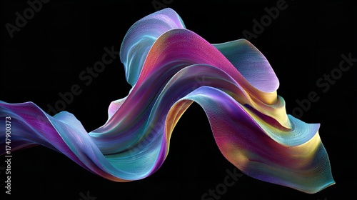 Dynamic Abstract Flow: A Vibrant Display of Colorful Waveforms Against a Dark Backdrop
