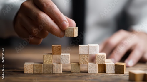 businessman, construction, pyramid, wooden blocks, determination, sharpened, enterprise, dynamic, powerful, strength, structure, building, industrious, hard-working, ambitious, productivity, motivation, success, lifestyle, corporate, office, workplace, organisation, growth, progress, leadership, teamwork, entrepreneurship, inspiration, empowerment, energetic, bold, vibrant