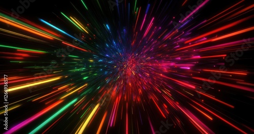 Dynamic Explosion of Light Beams in Red and Blue Abstract Illustration