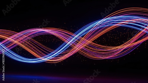 glowing, light, line, wavy, curved, abstract, colourful, vibrant, dark, black, particle, glistering, streak, flow, motion, dynamic, energy, futuristic, modern, digital, technology, movement, speed, blur, bright, electric, optical, fiber, datum, network, stream, wave, pulse, rythm, sound, music, art, design, background, texture, pattern, graphic, illustration, render, three-dimensional, computer, visual, effect, aurora