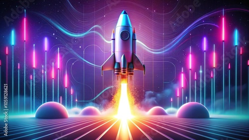 Dynamic Illustration of a Rocket Taking Off, Perfect for Visualizing Startup Concepts in Business Presentations and Creative Projects